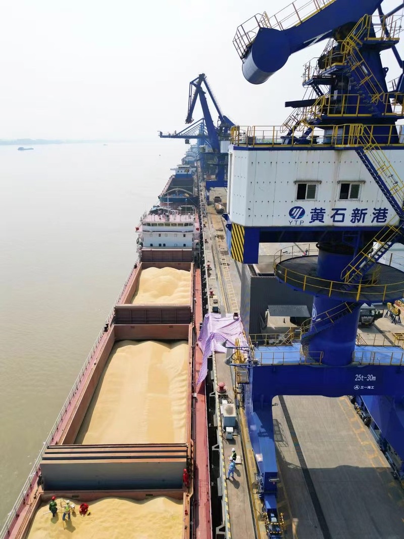 本月19日,该批次7000吨大豆经海船于舟山港转载至江海直达船“创新15”,经长江水道三天两夜航行后抵达黄石新港,经过连夜作业,该批大豆完成“水铁联运”散改集和装车,通过铁路转运发往四川成都,预计26日抵达。这批大豆也成为了黄石通过“江海直达+长江班列”物流新模式完成运输的首批货物。