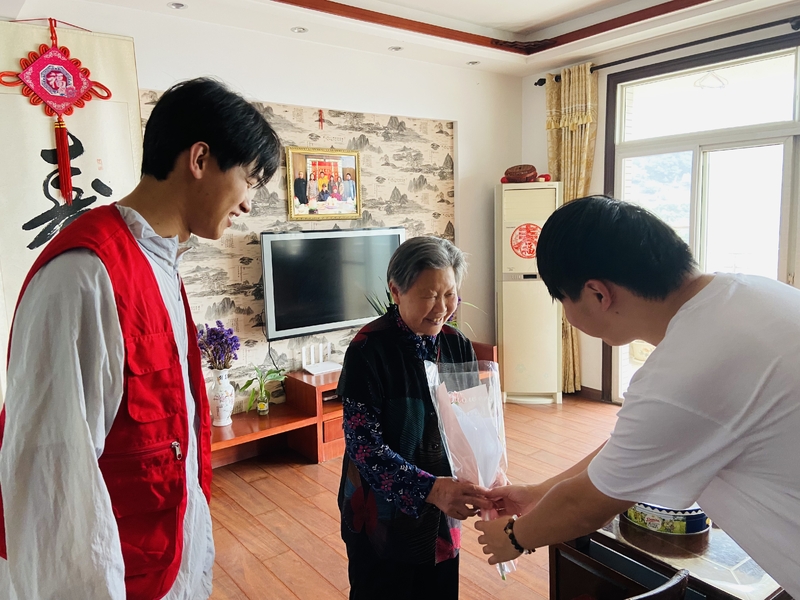 与此同时,社区志愿者带着鲜花和慰问品,走访慰问了社区中的5名独居母亲。志愿者逐一敲开独居老人的家门,为她们送上鲜花和问候,体现了社区大家庭的温暖。一声声问候与祝福,让老人们乐在其中,幸福满满。