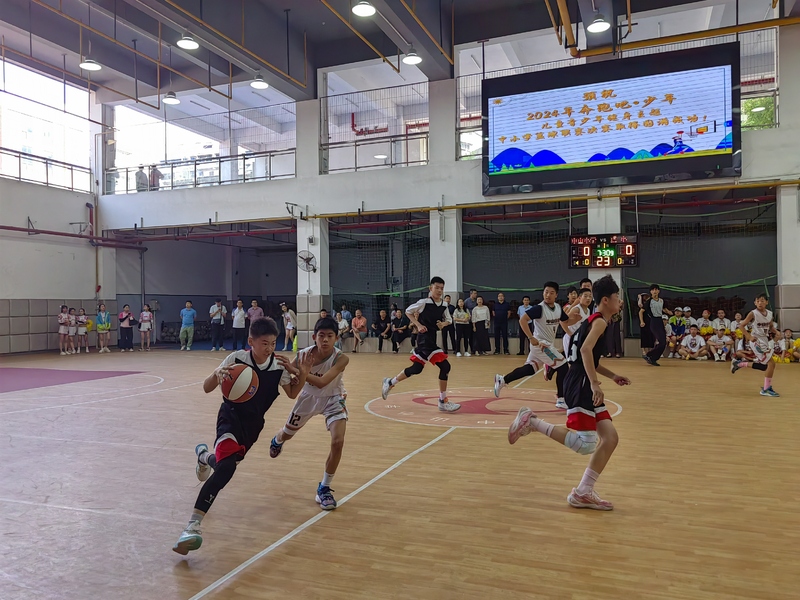 16日上午,记者在中山小学体育馆,现场观看了小学组男子决赛,对阵双方分别来自老虎头小学和中山小学,开场几分钟,老虎头小学一方首先进球得分,一度领先,但很快又被中山小学一方扳平并超越,双方全场争抢异常激烈,比分最终定格在44:35,中山小学一方取得最终胜利。