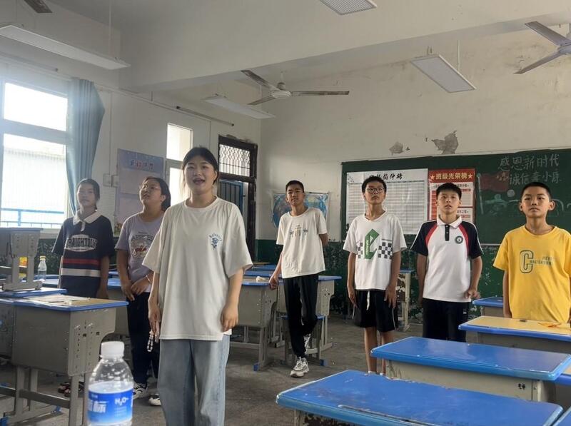 炎炎夏日,骄阳似火。12日,阳新县中庄中学的孩子们在湖北师范大学音乐学院“小燕子”实践队队员李亦心的带领下,开始了《绣红旗》舞台剧的排练。