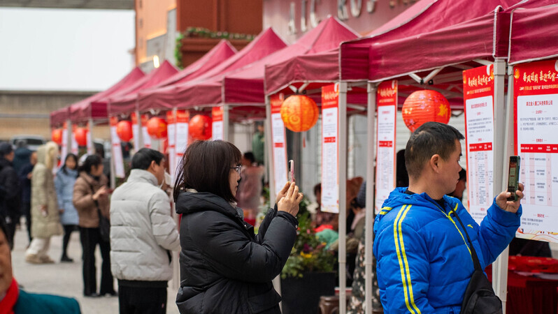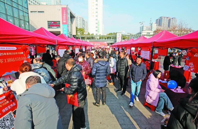 1月18日,黄石港区人社局在摩尔城广场举办黄石港区2025年春风行动专场招聘暨就业援助服务月启动式。