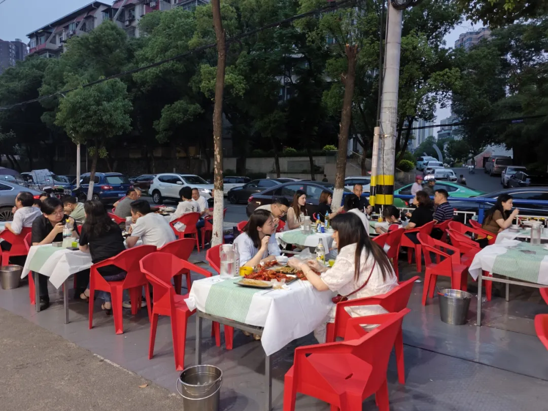 十三香鱼头香味浓郁,豆花鱼火锅鲜辣麻爽,破店烧烤外焦里嫩……虽然家家都有拿手绝活儿,但“卤虾”已悄然成为这个季节的“主菜”,每家店门口都摆上一大盘卤虾。“都是鲜虾现卤,一晚上能卖700-800斤呢!”一家店的老板娘一边捞虾一边介绍,店里早已坐满了食客。