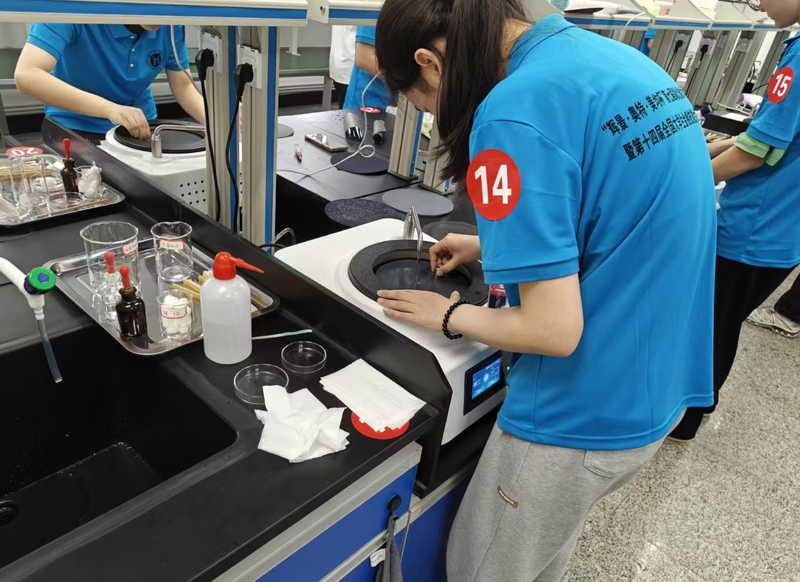 该比赛要求选手在限定时间内,凭借扎实的专业知识,对指定金属样品完成磨制、抛光、浸蚀等工序,最终制备出清晰、无瑕疵的金相样品,并在显微镜下准确观察、分析其显微组织。比赛现场,选手们屏气凝神,在方寸之间展现材料微观世界的奥秘,用专注与匠心,诠释着金相技能的魅力与价值。