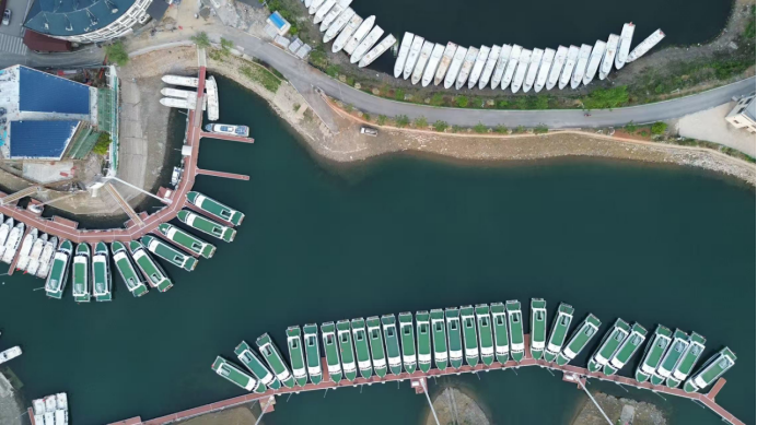 2018年,景区统一收购了119艘游船,进行规范化管理。2024年,投资引进40艘新能源船舶,这些纯电池动力游船零排放、低噪声、无污染,为游客带来更舒适体验的同时,也让仙岛湖的湖水更加清澈。